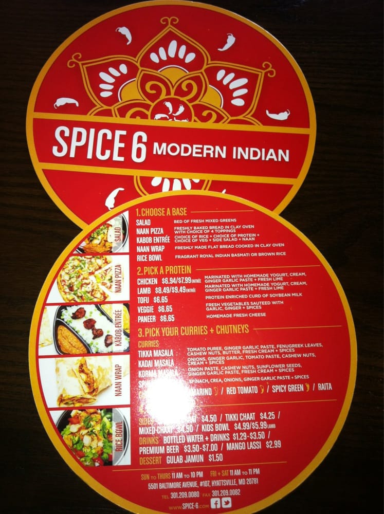 Welcome to Spice 6 Modern Indian, where traditional Indian cuisine meets contemporary innovation. Nestled in Hyattsville, MD, this vibrant eatery offers a delightful range of vegetarian and vegan options, catering to diverse palates. The menu is a culinary treasure trove, featuring standout dishes such as their butter chicken, which boasts a tangy, rich sauce that sets it apart from typical offerings. The unique naan pizza combines playful creativity with authentic flavor, receiving accolades from top publications.
